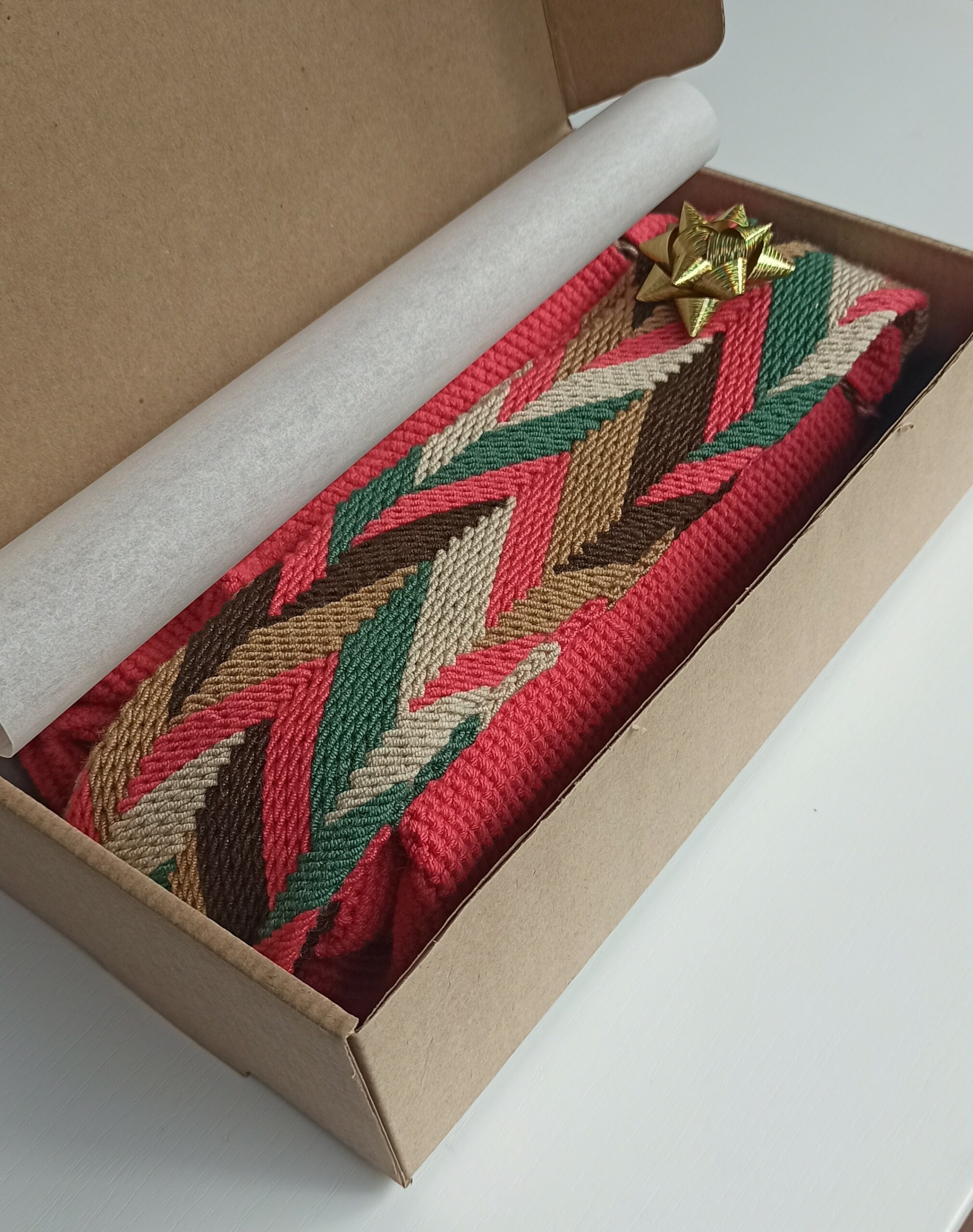Looking for a thoughtful present? We pack every mochila coral in a decorative box with ribbon and tissue paper. Consequently, it is immediately ready to give as a gift for birthdays, anniversaries, or cultural celebrations.